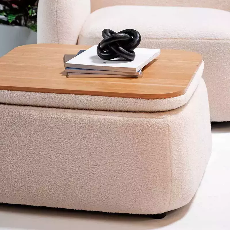 Material do Assento - Compensado com espuma laminada - D24 + D28/Tecido Bouclê