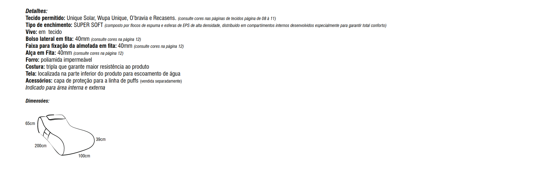 Acessórios: capa de proteção para a linha de puffs (vendida separadamente)